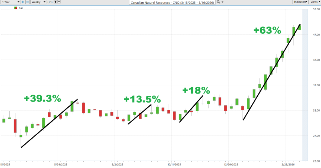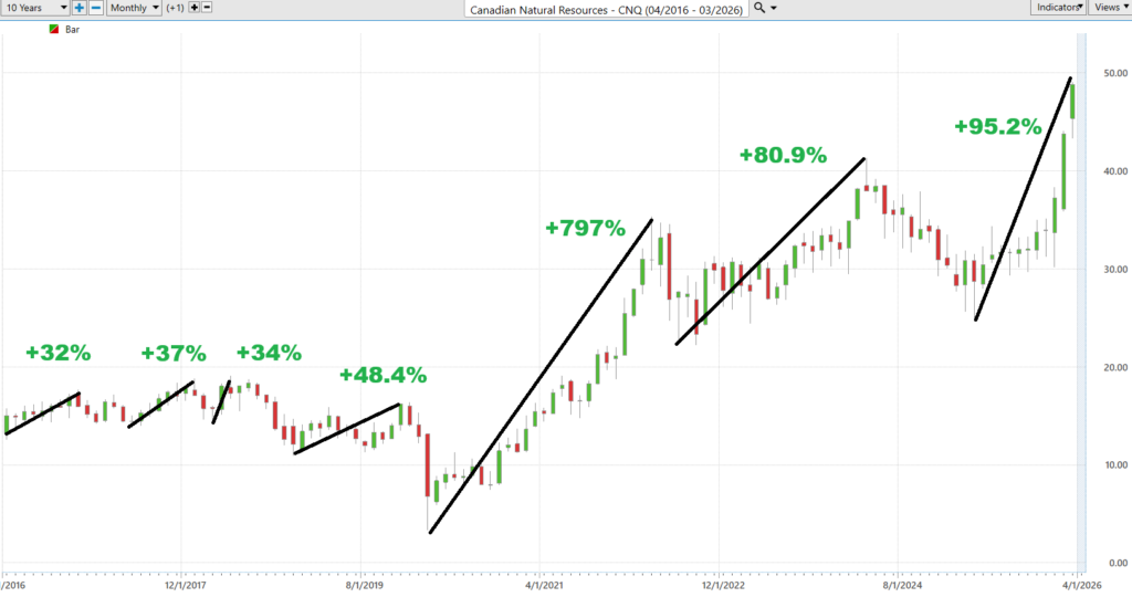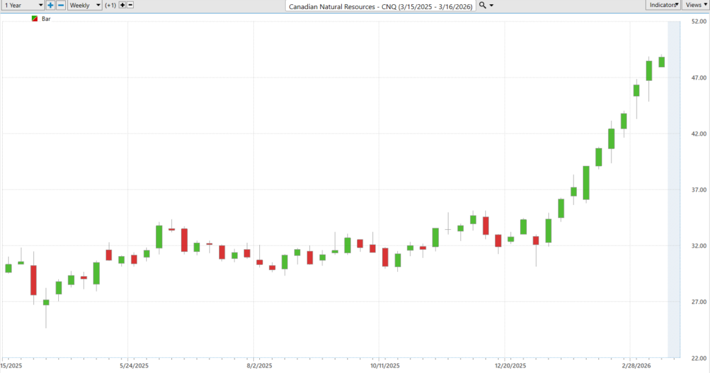 No matter how you frame the time horizon, Canadian Natural is not just outperforming, it is separating itself. While the major indexes are struggling to find direction, this stock continues to advance with consistency. That divergence is the signal. It tells you where capital is flowing, and more importantly, where it is not.