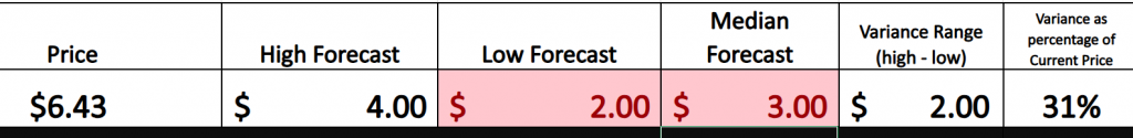 The first thing we can declare is that there is not a tremendous amount of Wall Street analysts’ coverage for $FMCC. But what we always pay attention to is the variance between the most optimistic and the most pessimistic forecasts. This tells us as traders how much volatility these analysts are expecting.