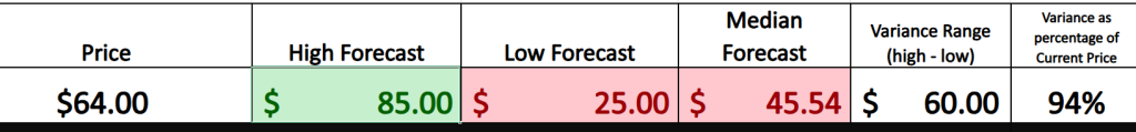 At the top, the most optimistic analyst projects the stock could hit $85.00, suggesting a 32.8% upside from today’s price. On the other end, the most bearish forecast calls for $25.00, pointing to a steep 60.9% drop. That’s an expected volatility band of nearly 94%, measured against current levels.