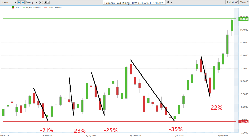 Investors and traders should keep a close eye on Harmony Gold for several reasons. First, the company’s performance is closely tied to the price of gold, which often serves as a safe haven during times of economic uncertainty. Recent global events have triggered a surge in gold prices, positioning Harmony to potentially reap significant benefits. Moreover, Harmony’s commitment to expanding its resource base and improving operational efficiencies suggests a forward-thinking approach that could lead to sustained growth and profitability. However, potential investors must consider the inherent volatility of the mining sector, influenced by regulatory changes, environmental concerns, and the cyclical nature of commodity markets. As such, Harmony Gold represents a compelling, albeit complex, opportunity for those looking to diversify their portfolios with a mining stock that offers both stability and a touch of adventure in the ever-volatile gold market.