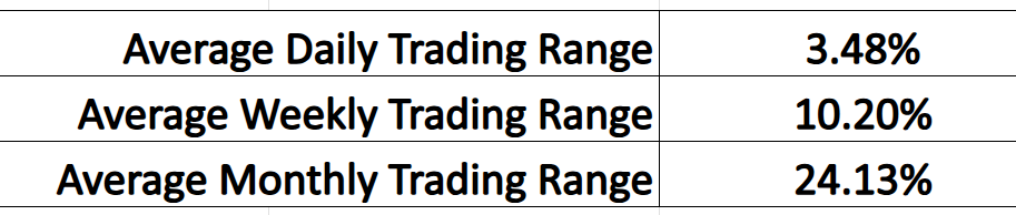 Here are the average daily, weekly and monthly trading ranges for $HMY over the past year. $HMY has a ton of volatility which is fantastic for short term trading opportunities.