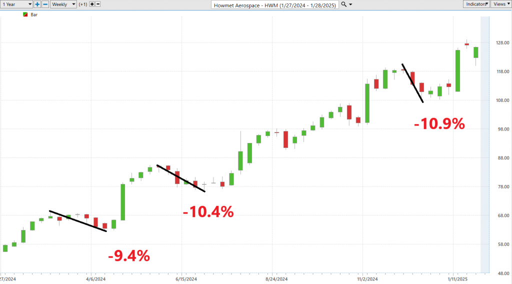 This straightforward methodology offers traders a clear, comparative view via two charts, delineating potential returns and vividly outlining the risks. This kind of simple analysis is indispensable for skillfully managing the turbulent price movements of $HWM and the broader market’s volatility. It arms traders with precise, informed insights that separate the savvy from the merely ordinary, providing a practical, focused toolkit that is crucial for those looking to stay ahead in the fast-paced dynamics of contemporary financial markets. Specifically, what we can learn from this simple exercise is a practical comparison of how the upside compared to the downside. This can be crucially important if the future is anything like the recent past.