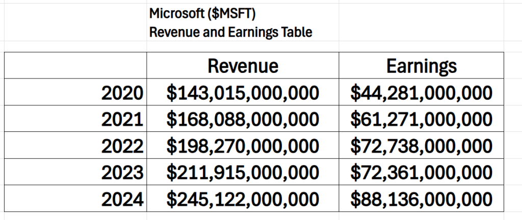 While we make all our decisions based upon the artificial intelligence forecasts, we do look at the fundamentals briefly, just to understand the financial landscape that $MSFT is operating in.