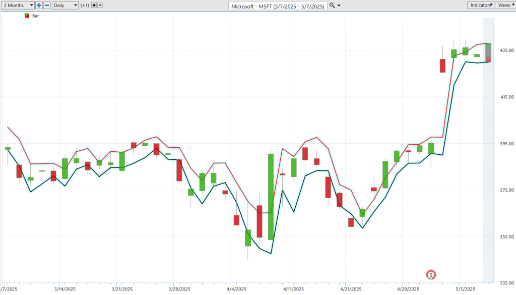 Smart traders also focus on the Value Zone — that moment when $MSFT brushes against or dips just below the Predictive Blue Line while in an uptrend. Often, that’s not a cause for concern — it’s a chance to enter with confidence. But if the stock is trending lower and suddenly pierces above the line, that’s often a subtle but powerful exit cue — a sign the market may be stalling or shifting.