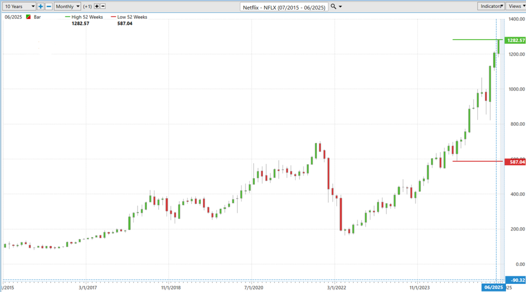 This stock went from mailing DVDs to conquering global entertainment, and now it’s sitting pretty with a $520 billion market cap. It’s one of the most valuable businesses on the planet, and it earned every penny.