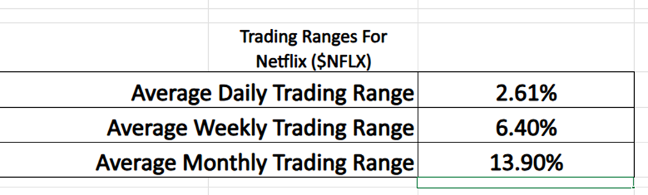 Here are the average trading ranges for $NFLX over the past year for the daily, weekly and monthly time frames: