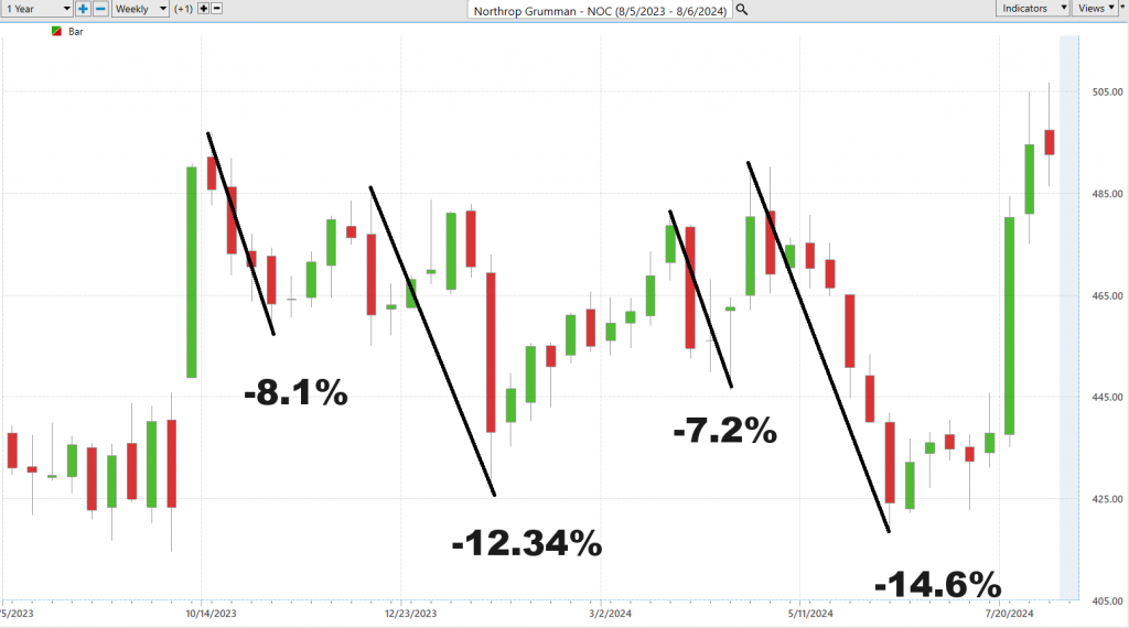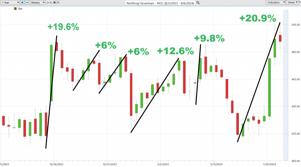 For short-term swing traders, the emphasis is on the trend rather than the popularity of a stock. Take Northrop Grumman ($NOC) for example. While it may not be as popular as some Wall Street darlings, it still offers substantial trading opportunities.