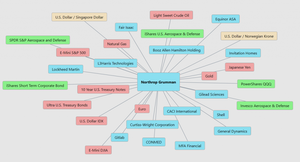 So, as we navigate the complexities of the financial markets, it’s crucial to consider the broader picture. By understanding how different markets interact, traders can make more informed decisions and enhance their strategies. As you study the graphic below, recognize that you are looking at the 31 key drivers of price for $NOC. These are the assets most responsible for the price action of $NOC.