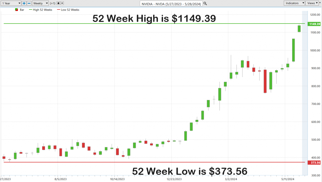 Over the past 52 weeks $NVDA has traded as high as $1149.39 and as low as $373.56.