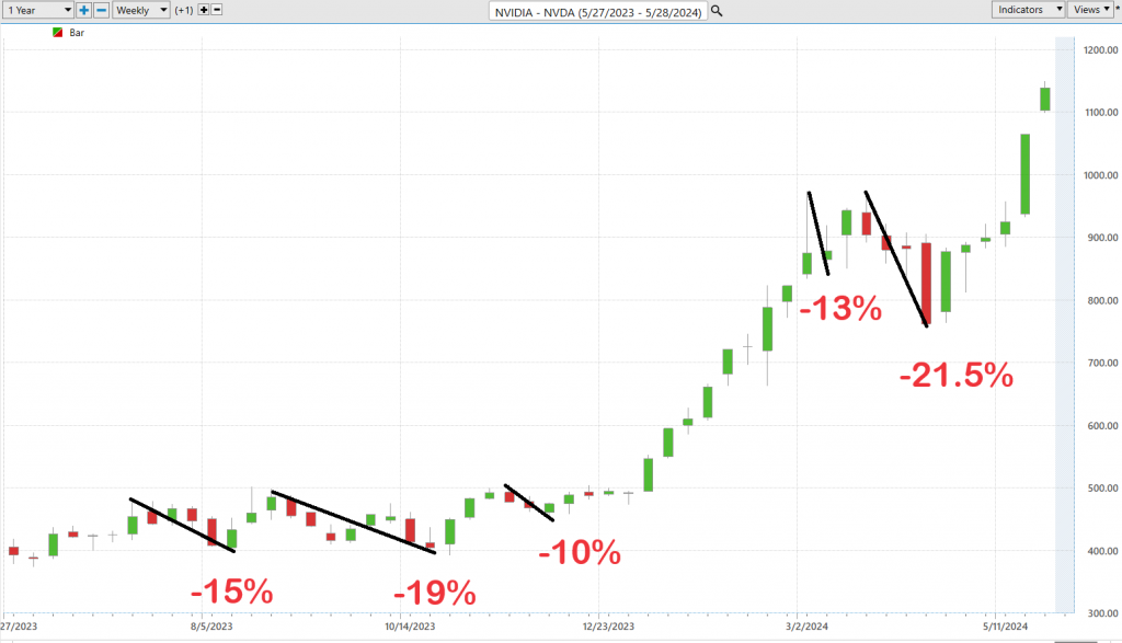 Remember, folks, a trend in motion tends to stay in motion until it stops. This principle underscores the importance of momentum in trading. When you see a stock like Nvidia pushing through its 52-week high consistently, it’s a strong indicator that it there is massive investor confidence supporting the higher valuation. Conversely, falling below the 52-week low often suggests further declines.