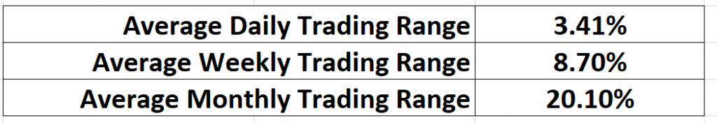 Take NVIDIA stock ($NVDA) as an example. Examine its average trading ranges on a daily, weekly, and monthly basis.