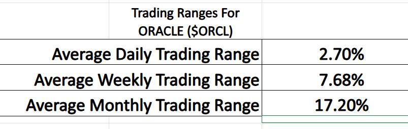 Here are the average trading ranges for $ORCL over the daily, weekly and monthly time frame: