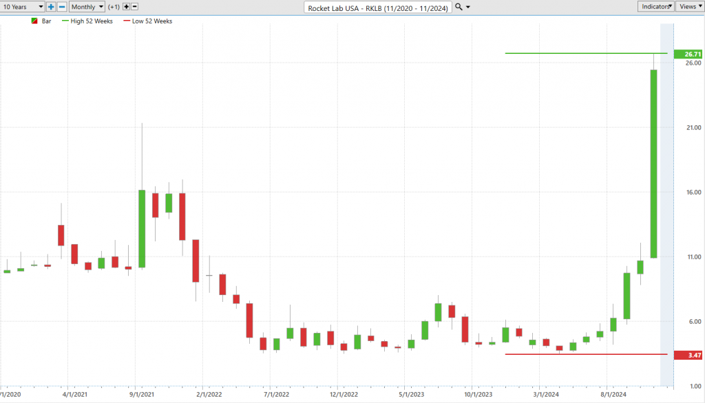 Over the past year, Rocket Lab’s stock fluctuated between a low of $3.47 and a high of $26.71, revealing a dramatic range that speaks volumes about its historical volatility and market sentiment.