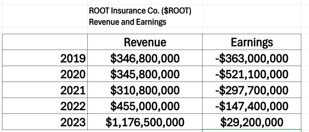 When we study the revenue and earnings of $ROOT for the past 5 years what is very exciting is that it appears that $ROOT has turned the corner to profitability.