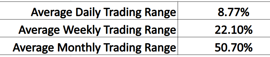 This analysis provides another perspective on volatility and highlights how wide the trading ranges over each time frame are.
