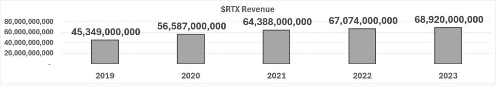 First off let’s look at $RTX revenue over the last 5 years. Revenue has consistently grown year over year and in the last 5 years revenue has grown 51%.