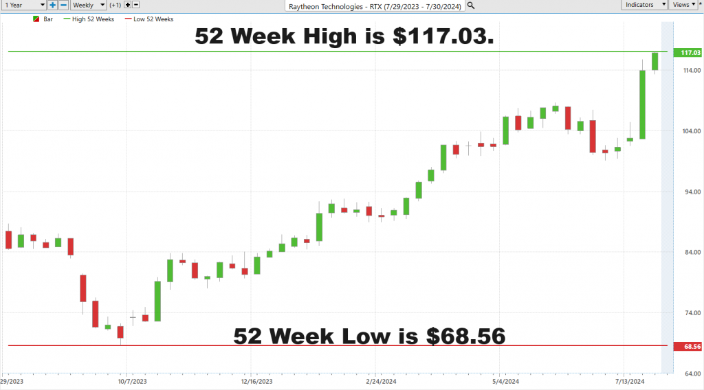 Here is the $52 week chart of $RTX where you can clearly see the value and significance of the 52-week boundaries in action.