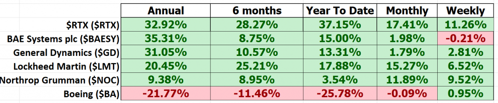 Finally, we often like to get more granular by looking at $RTX competitors and see how they have performed comparatively: