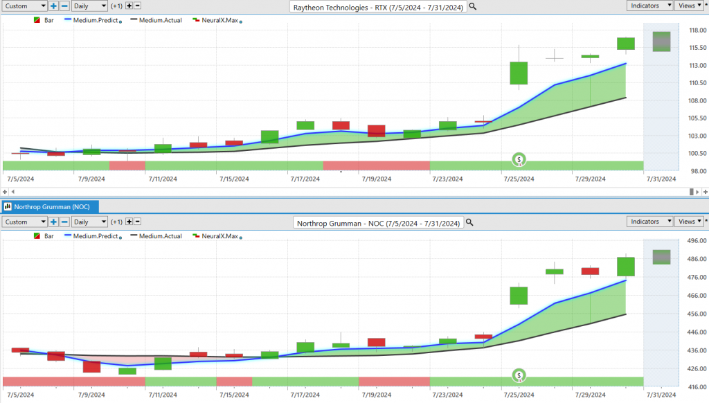 Remember we are in an election year and defense contractors are primary beneficiaries of government spending. $RTX and $NOC have trends that appear almost identical as we go into the fall elections.