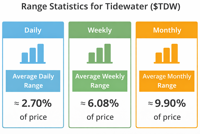 Look at the numbers in this graphic and a very simple truth about trading becomes clear. $TDW typically moves about 2.7% in a single day, roughly 6% in a week, and nearly 10% over the course of a month. That is the natural rhythm of the stock. Markets move. Prices fluctuate. And every single day traders are forced to make decisions without clearly knowing how far a stock might reasonably travel.