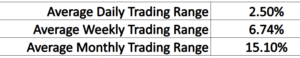 Simply put, A.I. isn’t just a tool; it’s your competitive edge, supercharging your ability to analyze data, identify opportunities, and refine your trading strategies in today’s fast-moving markets. And the first step? Understanding real-world volatility. Here’s the average trading ranges on a daily, weekly, and monthly basis: