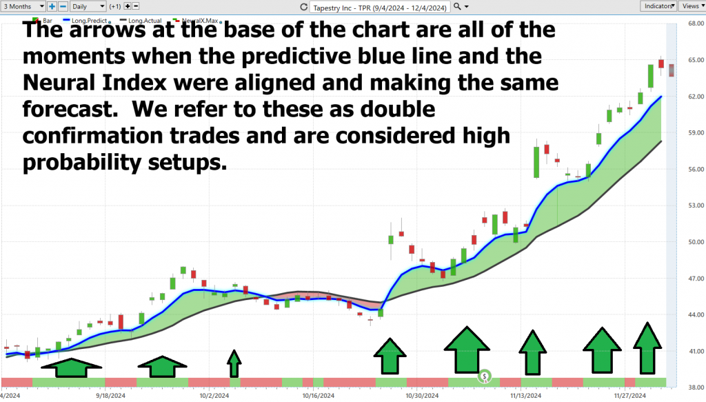 Here is the powerful strategy behind A.I.-driven market predictions for $TPR with VantagePoint Software. At its core lies the predictive blue line — a revolutionary tool powered by cutting-edge artificial intelligence and intermarket analysis. Think of it as your financial North Star, guiding you through the often-chaotic waves of the markets.