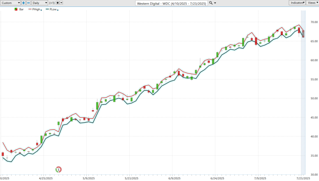 But tech trends alone don’t tell the full story. Chip prices, supply chain stability, and interest rate policy all tug at WDC’s margins and momentum. When NAND prices jump and WDC can pass those increases on, the stock can surge. When rates rise or the dollar gets too strong, foreign buyers pull back — and so does the stock. That’s why serious investors don’t just follow headlines — they track intermarket relationships: tech strength, bond yields, commodity prices, and currency swings. These aren’t just macro signals — they’re the levers of influence behind every institutional trade.