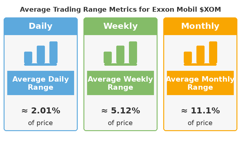 At $170, Exxon Mobil is trading just below its 52-week high of $176.41 and well above its 52-week low of $97.80. That places the stock at roughly 92% of its 52-week range, which is firmly in the upper zone where strong trends live. The total range between high and low is $78.61, and when you divide that by the current price, you get a historical volatility proxy of 46.24%. Translation: this stock moves, and it has proven it over the past year.