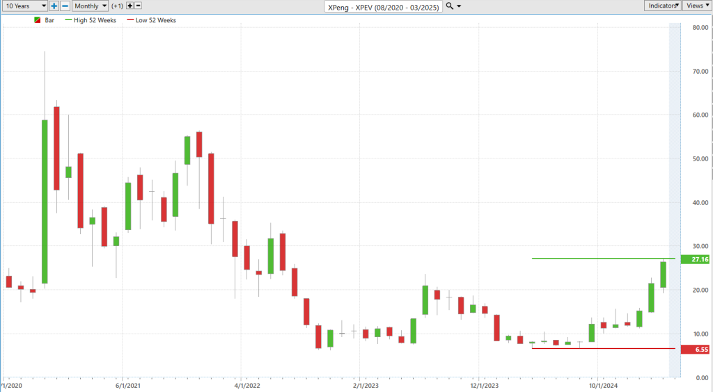 Here is the 52-week chart to provide a concise analysis of the trajectory that $XPEV has had over the past year.
