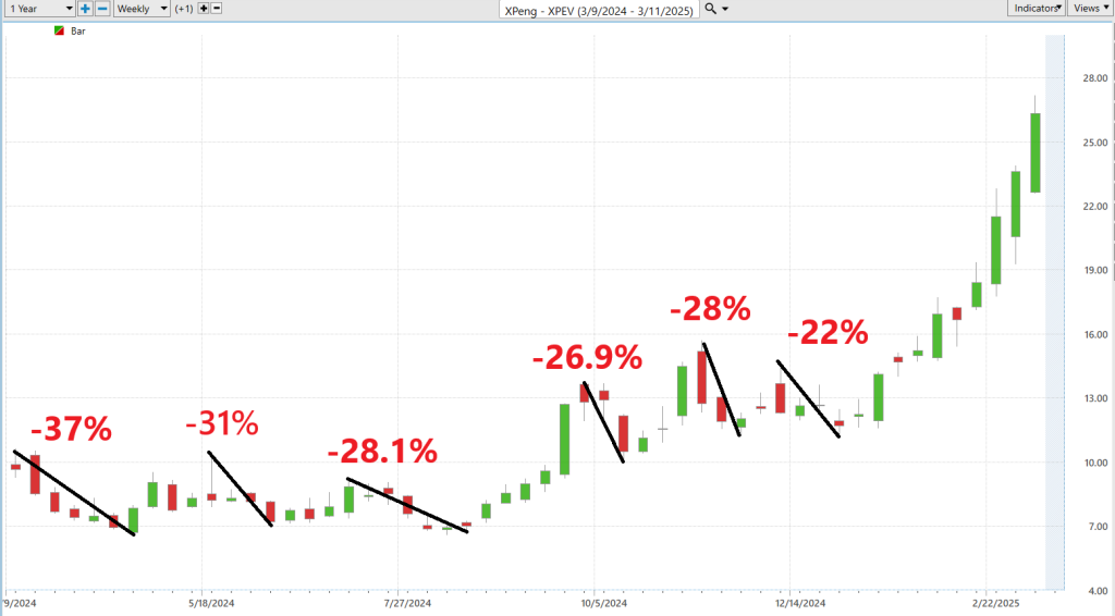 Clearly $XPEV is largely uncorrelated to the broader market price action. It also is massively outperforming across all time frames.