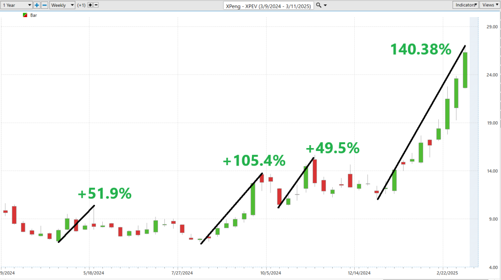 By mapping $XPEV’s moves against the major indices, we get the full picture — its strength, its weaknesses, and whether it’s a rising star or just another market casualty. This is how you cut through the noise and get to understand the real potential.