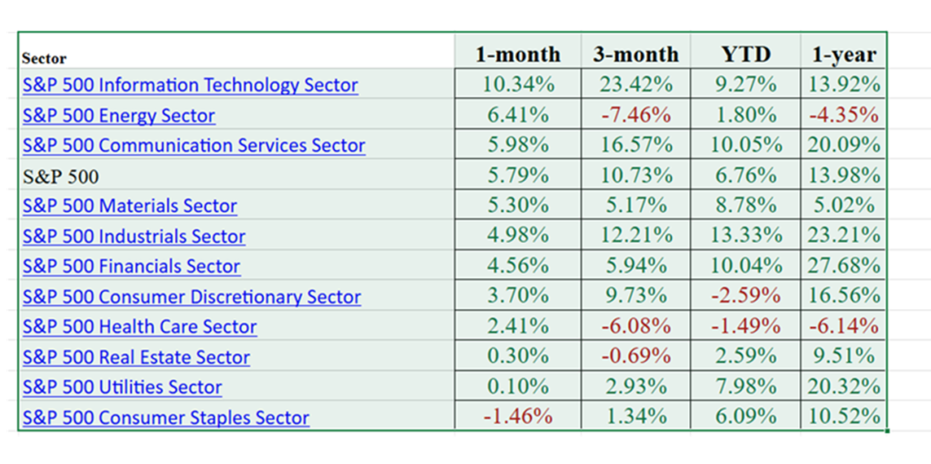 Look at the sector performance over the past month: