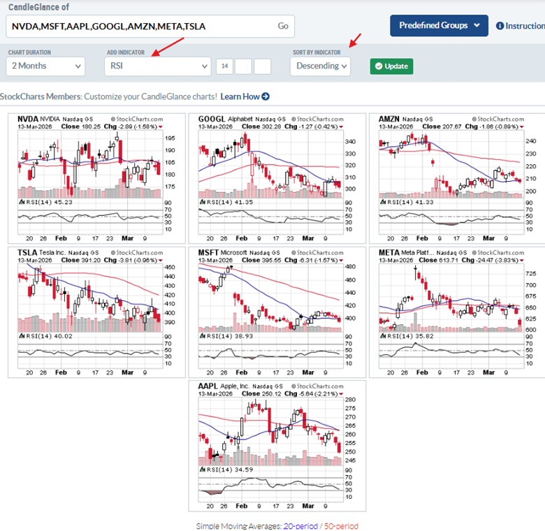 Sorting by an indicator such as RSI prioritizes your list of stocks.