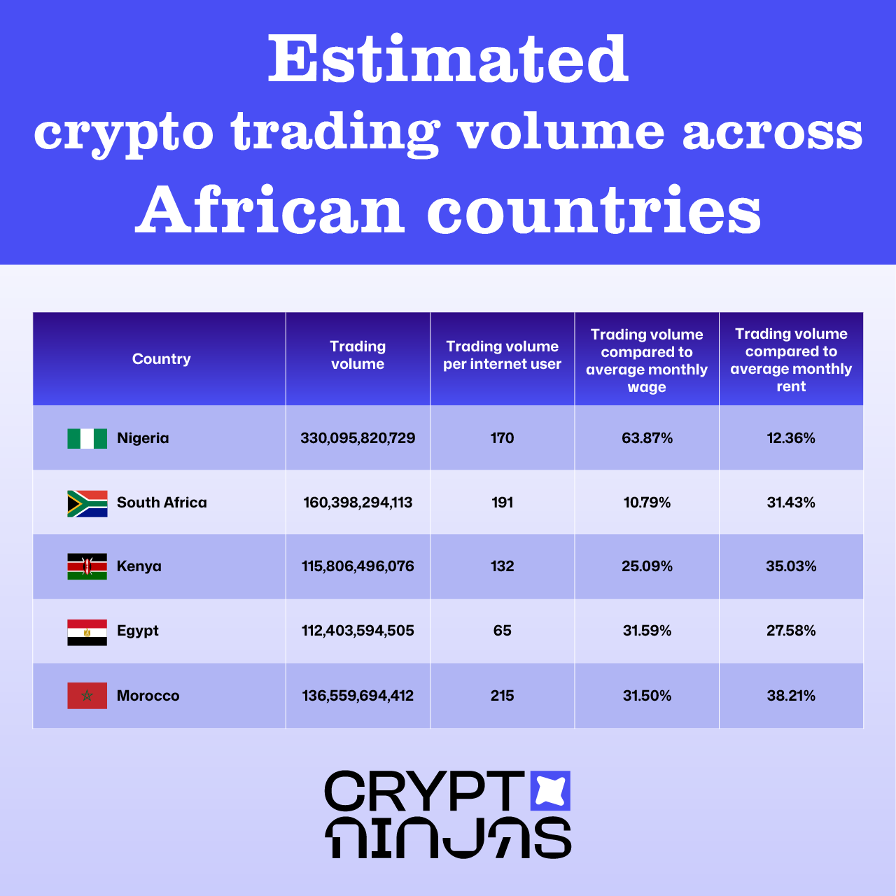 Africa is experiencing the fastest crypto trading growth, with volumes expected to be five times higher in 2024 than in 2022. Nigeria leads the continent, with a trading volume exceeding $330 billion in 2024. Additionally, Nigerians allocate a significant portion of their earnings to crypto, with spending surpassing 63.87% of their monthly wage.