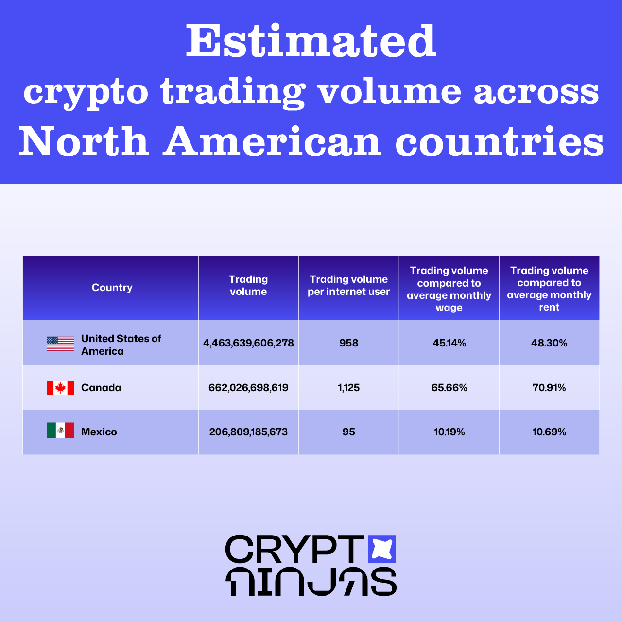 - The United States leads as the most active crypto trading nation, surpassing $4 trillion.