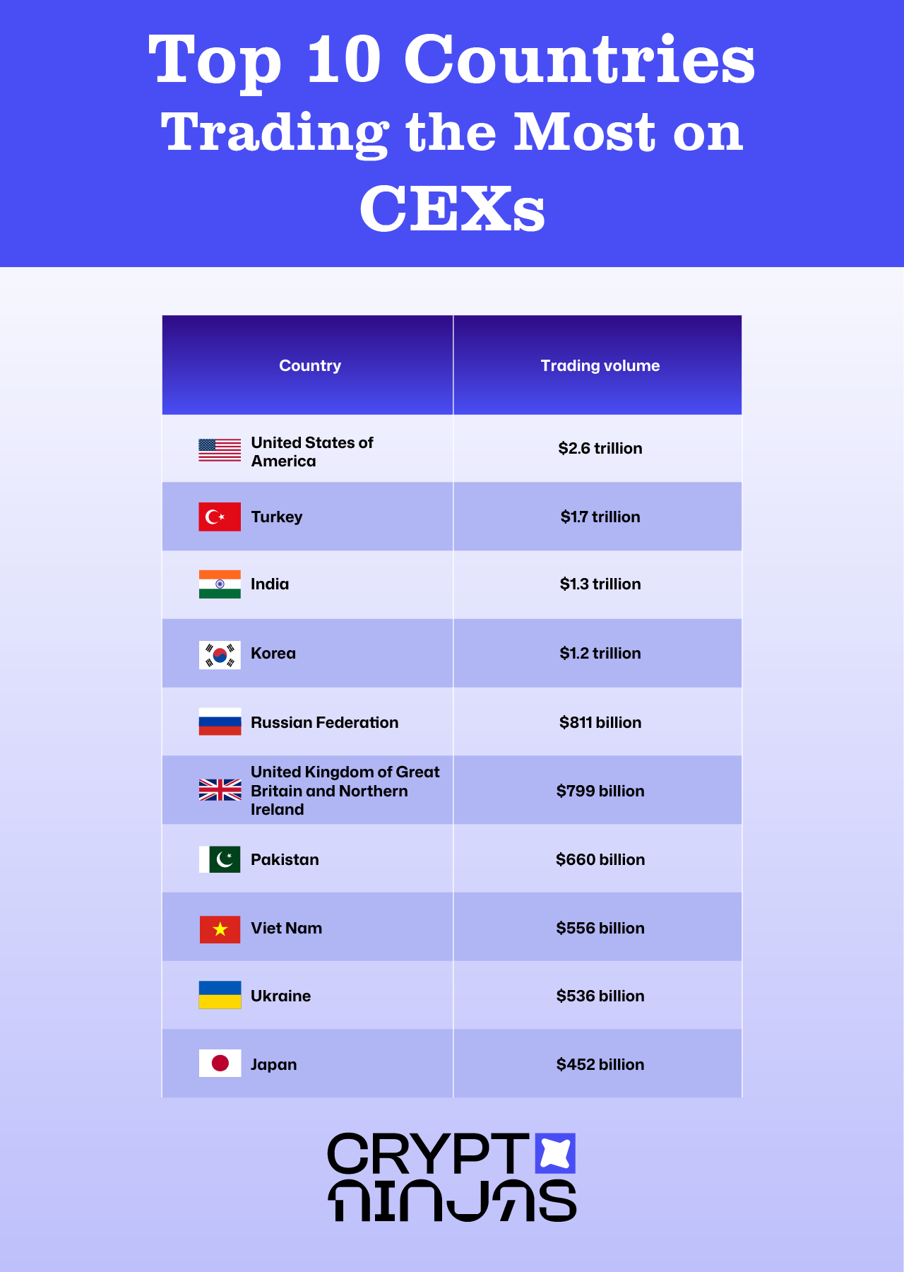 Global cryptocurrency trading volumes have surged significantly in recent years. The industry has grown despite regulatory pressures, market fluctuations, and shifting investor sentiment. But where is most of this trading happening? This study, conducted by CryptoNinjas and Storible, delves into global trading trends, examining which regions and countries dominate both centralized exchange (CEX) and decentralized exchange (DEX) trading.