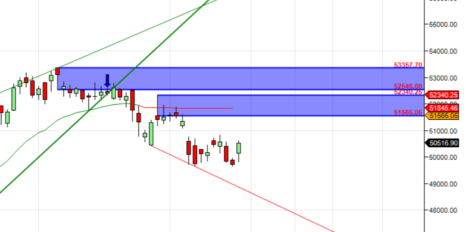 51800 is Monthly Resistance zone 50208 is Monthly Support zone.