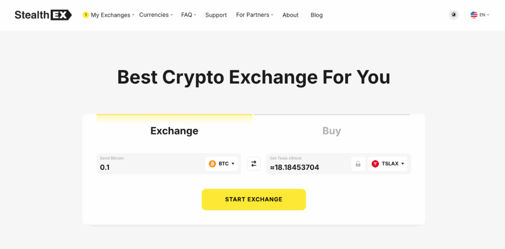 StealthEX offers competitive exchange rates, a clean and intuitive interface, and the peace of mind that comes from a fully non-custodial model. Whether you’re rotating from tokenized equities into stablecoins, diversifying into altcoins, or simply consolidating your portfolio, StealthEX makes the process frictionless.