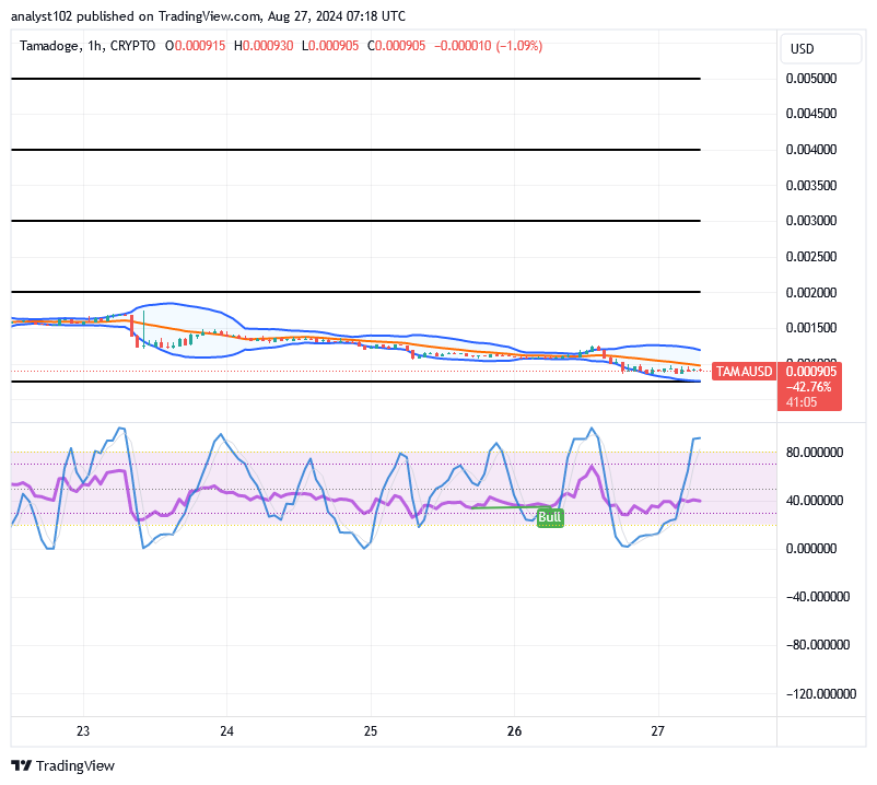 A downward channel has been made between the middle and lower Bollinger Bands to embody the pace of the forces that is being demonstrated between bulls and bears in the business operations of TAMA/USD trade, as the crypto market now debases slowly, preparing up-swings signs.
