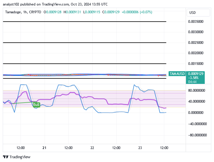 Buying efforts are encouraged to continue since most indicators show that the TAMA/USD trade is transacting in decreasing spots, as the crypto’s price reaffirms sits around $0.001, holding rise signs.
