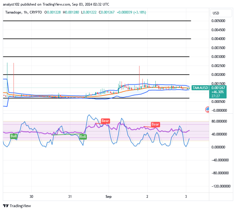 Looking at the attempt of the Bollinger Bands tending to get repositioned back to the upside, the trade zones portended by the lower part appear now as the crucial underlying support zones, given that the TAMA/USD trade currently holds bounce signals, facing resistances around $0.002.
