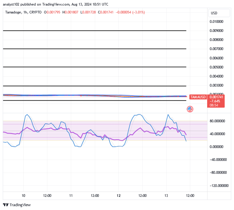 The TAMA/USD short-term chart reveals that the crypto-economic price is presently hovering and holding spikes inputs around $0.002.