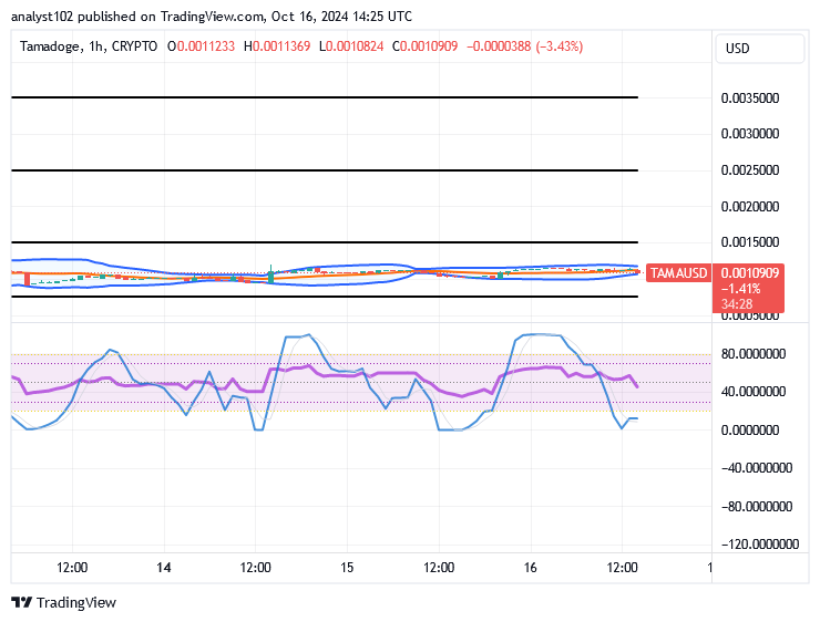 There have been gradual active price movements producing smaller ups and downs below the barriers of $0.0015, as the TAMA/USD market features in ranges, muscling momentum.