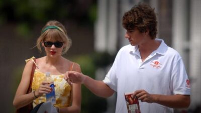 Lucas played her love interest in the “You Belong With Me” music video, taking us back to when Taylor was rocking curly hair, sundresses, and living her teen rom-com fantasy.