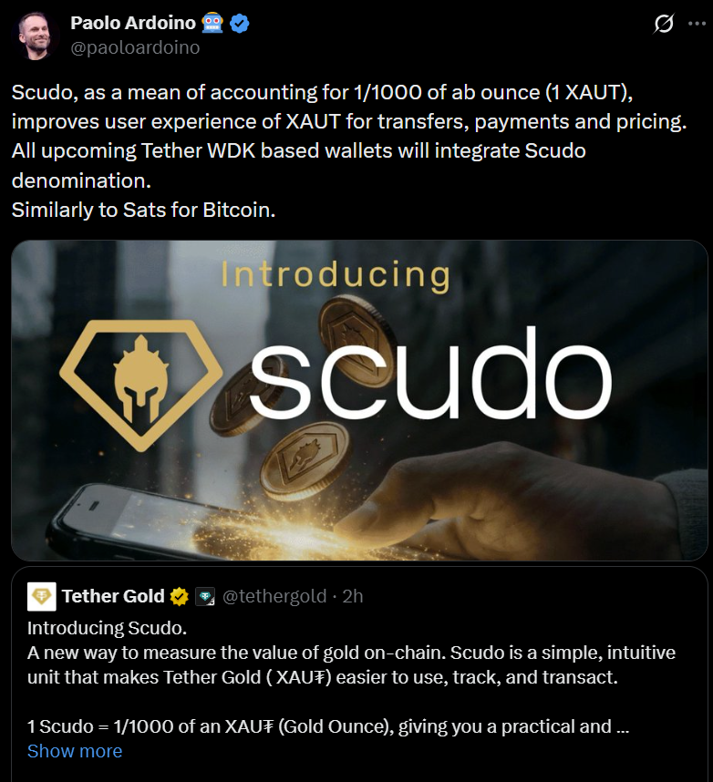 Although XAUT already addressed many of those challenges by tokenizing physical gold, Scudo is intended to further simplify smaller, onchain transactions backed by the metal.