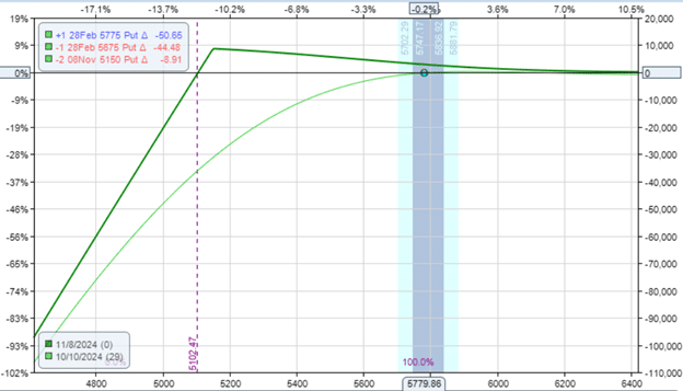 Sell two November 8, 2024, SPX 5150 put @ $13.85