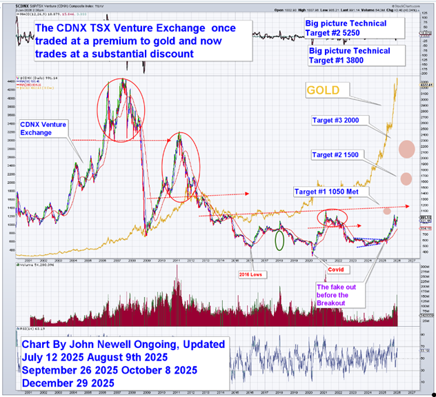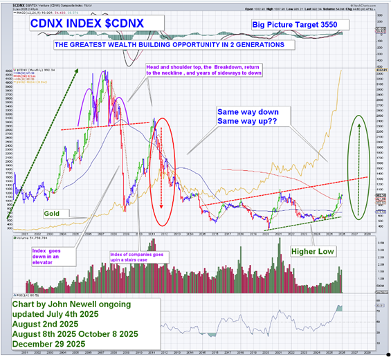The long-term charts I’ve been maintaining show that the CDNX has spent more than a decade forming a broad base following the 2011–2012 breakdown. That base now appears to be resolving.