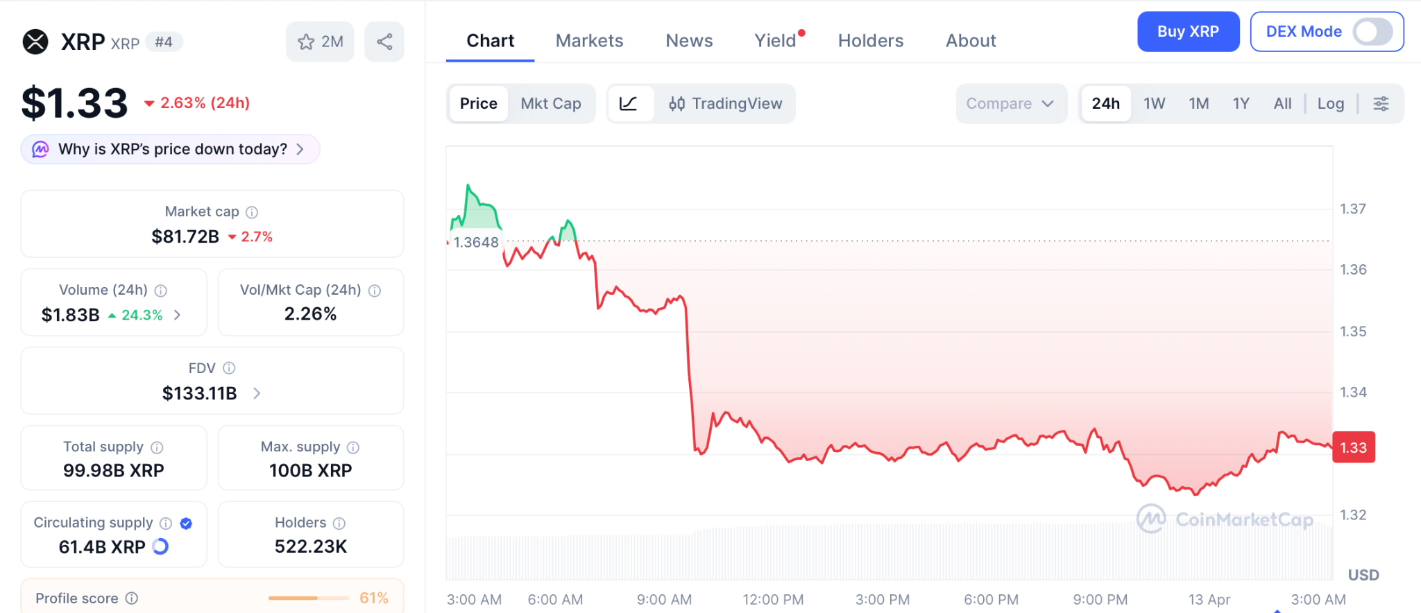 XRP trades near $1.33 with an $81 billion cap per CoinMarketCap. The SEC settlement gave Ripple clarity and payment deals keep growing.