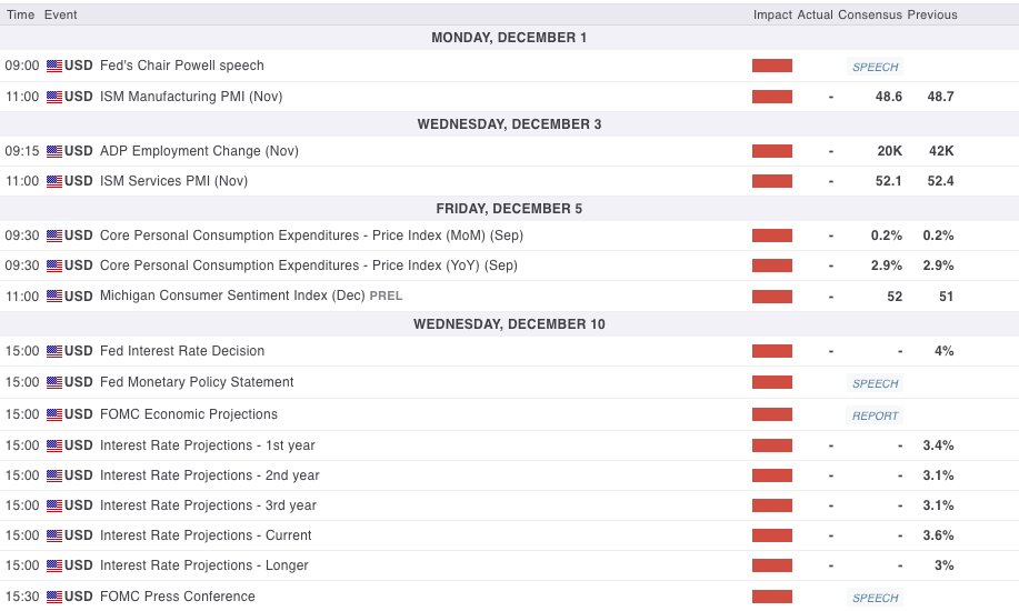 Next week will see the release of US PMIs (Manufacturing on Tuesday and Services on Wednesday), and even more importantly, the Core PCE (December 5), which will be the last indicator to determine whether the Fed will cut or not.