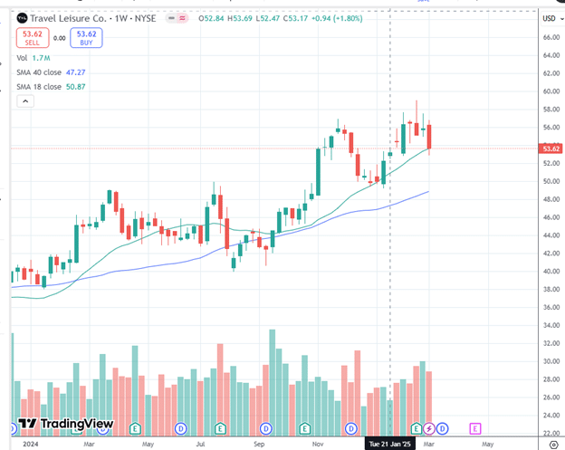Take a look at Travel Leisure Co (TNL), where at point 1, it had a bearish crossover: